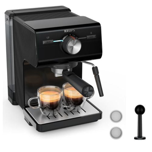 Krups aparat za espreso 381810 Authentic - Kompaktan i svestran Doživite aromatični espresso kao u kafiću. Pritisak pumpe od 15 bara izvlači najbolje iz vaših zrna kafe i osigurava intenzivan okus u svakoj šoljici. Jednostavno dočarajte mliječnu pjenu Integrirana mlaznica za paru olakšava vam pjenjenje mlijeka. Pripremite bez napora kremasti cappuccino ili latte macchiato i uživajte u savršeno izbalansiranim kreacijama od kafe i mlijeka. Neka kava bude vaš hobi. Veliki rezervoar za vodu od 2 litre štedi vam gnjavažu stalnog punjenja, dok jednostavan rad i kompaktan dizajn čine aparat idealnim pratiocem u malim kuhinjama. Dobijte svoje svakodnevno uživanje u kafi kod kuće! Karakteristike: - pritisak pumpe od 15 bara za puni espresso - mlaznica za paru za kremastu mliječnu pjenu - jednostavno rukovanje sa osvijetljenim dugmadima - uklonjivi, praktični rezervoar za vodu od 2 litra - kompaktne dimenzije: 20 x 28,8 x 28,6 cm - težina: 3,2 kg.