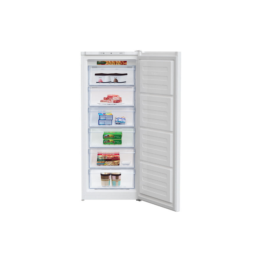 Beko zamrzivač RFSA210K40WN je praktičan uspravni samostojeći zamrzivač kapaciteta 168 litara, dizajniran za jednostavno organizovanje i dugotrajno čuvanje namirnica. Sa šest prostranih fioka, omogućava jasan pregled i lak pristup zamrznutoj hrani. Zahvaljujući funkciji brzog zamrzavanja, namirnice zadržavaju nutritivne vrijednosti i svježinu. Statički sistem hlađenja osigurava pouzdan rad, dok je mehanička kontrola temperature jednostavna i precizna. Model dolazi u elegantnoj bijeloj boji, idealan za svako domaćinstvo.