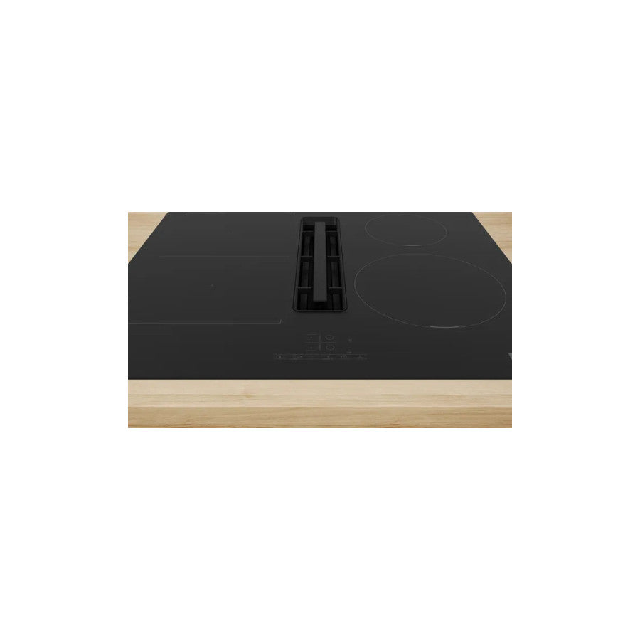 Bosch indukcijska ugradbena ploča s napom PVS611B16E kombinuje savremenu indukcijsku tehnologiju i efikasnu napa u jednom elegantnom uređaju. Sa četiri indukcijske zone, uključujući jednu kombiniranu zonu, omogućava fleksibilno kuhanje za različite posude i recepte. Integrisana napa sa maksimalnim protokom zraka do 622 m³/h pruža snažno, a istovremeno tiho uklanjanje pare i mirisa iz kuhinje zahvaljujući EcoSilence Drive motoru. TouchSelect upravljanje i PowerBoost funkcija osiguravaju preciznu kontrolu temperature i brzo zagrijavanje, dok timer i sigurnosne funkcije čine upotrebu jednostavnom i sigurnom.