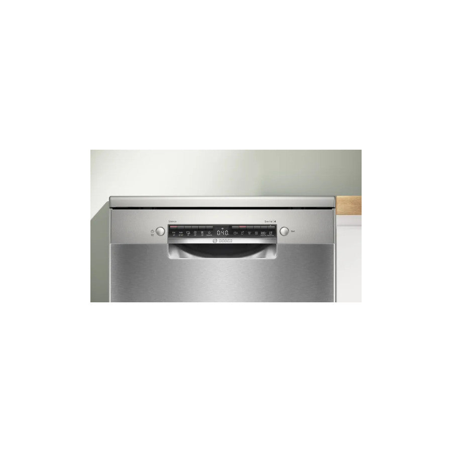 Bosch sudomašina SMS4HVI00E je samostojeći model širine 60 cm koji nudi vrhunske performanse pranja uz modernu tehnologiju i elegantan dizajn od brušenog čelika s premazom protiv otisaka prstiju. Zahvaljujući kapacitetu od 14 kompleta posuđa, idealna je za veće porodice. Opremljena je inverter motorom EcoSilence Drive™ koji garantuje tih i dugotrajan rad, dok sistem Home Connect omogućava pametno upravljanje putem mobilne aplikacije. SpeedPerfect Plus funkcija omogućava brže pranje bez gubitka kvaliteta, a izmjenjivač topline osigurava efikasno sušenje uz manju potrošnju energije.