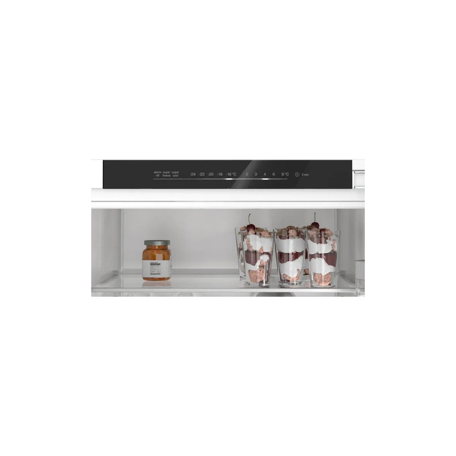 Bosch KIN96VFD0 je prostran ugradbeni frižider s NoFrost tehnologijom koji olakšava održavanje i štedi vrijeme odmrzavanja. VitaFresh sistem čuva svježinu namirnica, a SuperCooling i Super zamrzavanje omogućavaju brzo hlađenje i zamrzavanje. Njegova tiha i energetski efikasna izvedba, zajedno s preglednim rasporedom polica i ladica, čini ga idealnim rješenjem za veće kuhinje i obitelji koje traže pouzdan, dugotrajan i praktičan frižider.