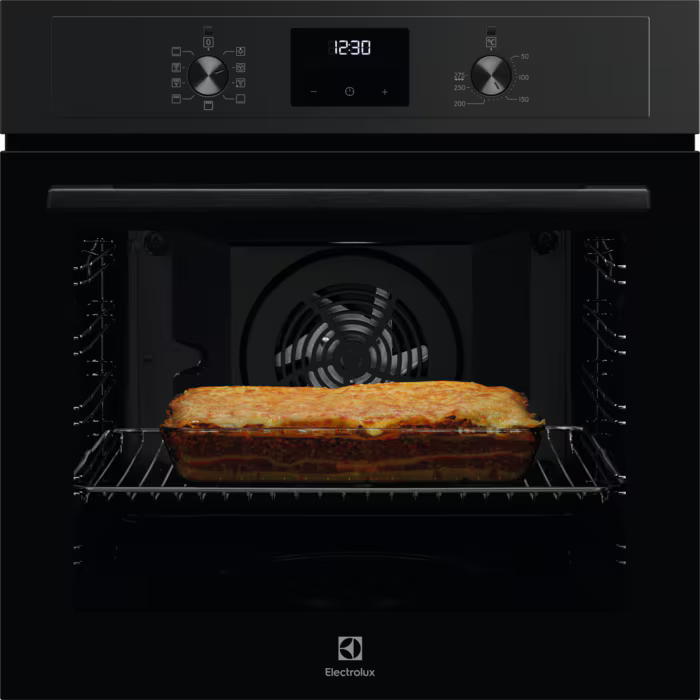 Electrolux ugradbena pećnica EOF3H40TH je multifunkcionalna električna pećnica zapremine 72 l koja omogućava raznovrsne načine pripreme hrane. Podržava tradicionalno pečenje, ventilatorsko pečenje, turbo roštiljanje, postavke za pizzu i pečenje vlagom i ventilatorom. Aqua Clean Enamel olakšava čišćenje, dok Pop in / Pop out tipke s preciznim sungrind kontrolama i halogeno osvjetljenje unutrašnjosti čine pripremu hrane jednostavnom i praktičnom.