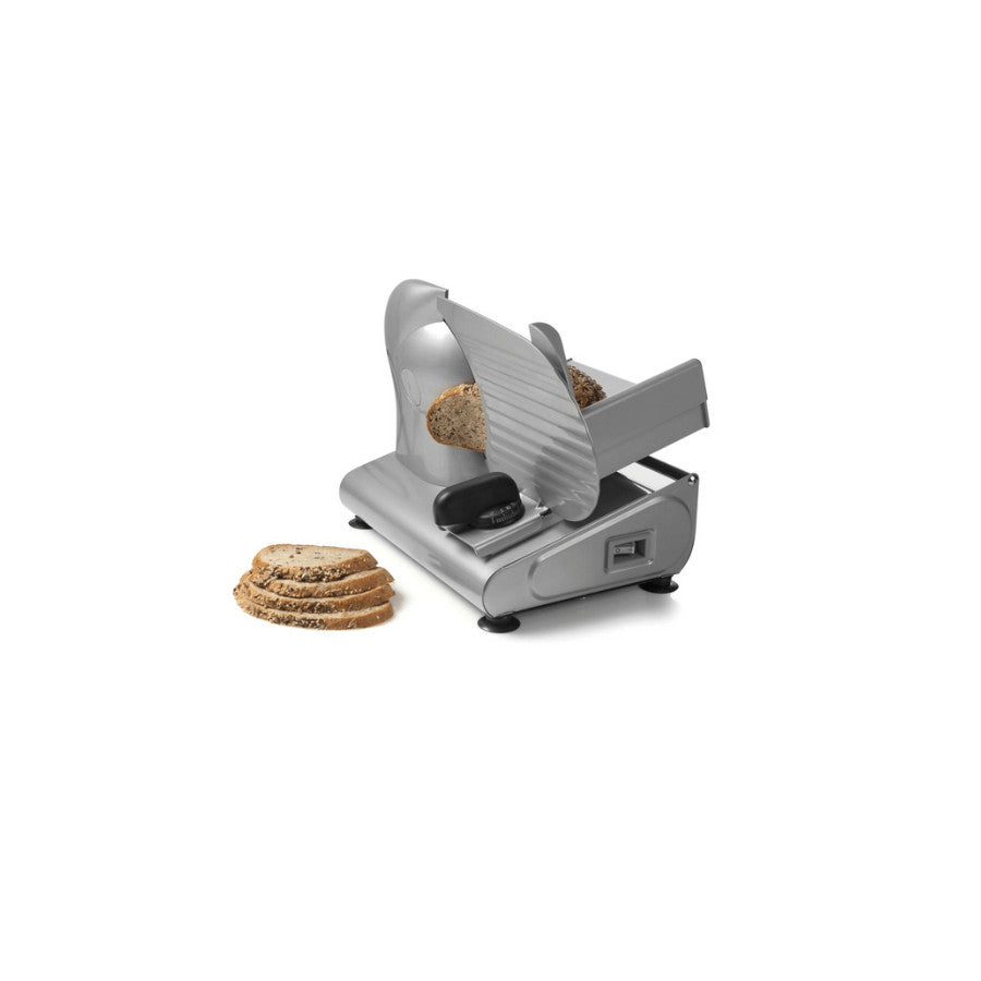 Gorenje R 506 E je električni rezač (mesoreznica) koji pruža brz i precizan rez zahvaljujući snažnom motoru i robusnoj konstrukciji. Opremljen je oštricom od nehrđajućeg čelika promjera 19 cm i omogućava podešavanje debljine reza od izuzetno tankih do debljih kriški, čime je idealan za meso, sir, povrće i hljeb. Stabilnost uređaja osiguravaju gumene nogice, a jednostavni kontrolni komandni prekidač omogućava praktično upravljanje.