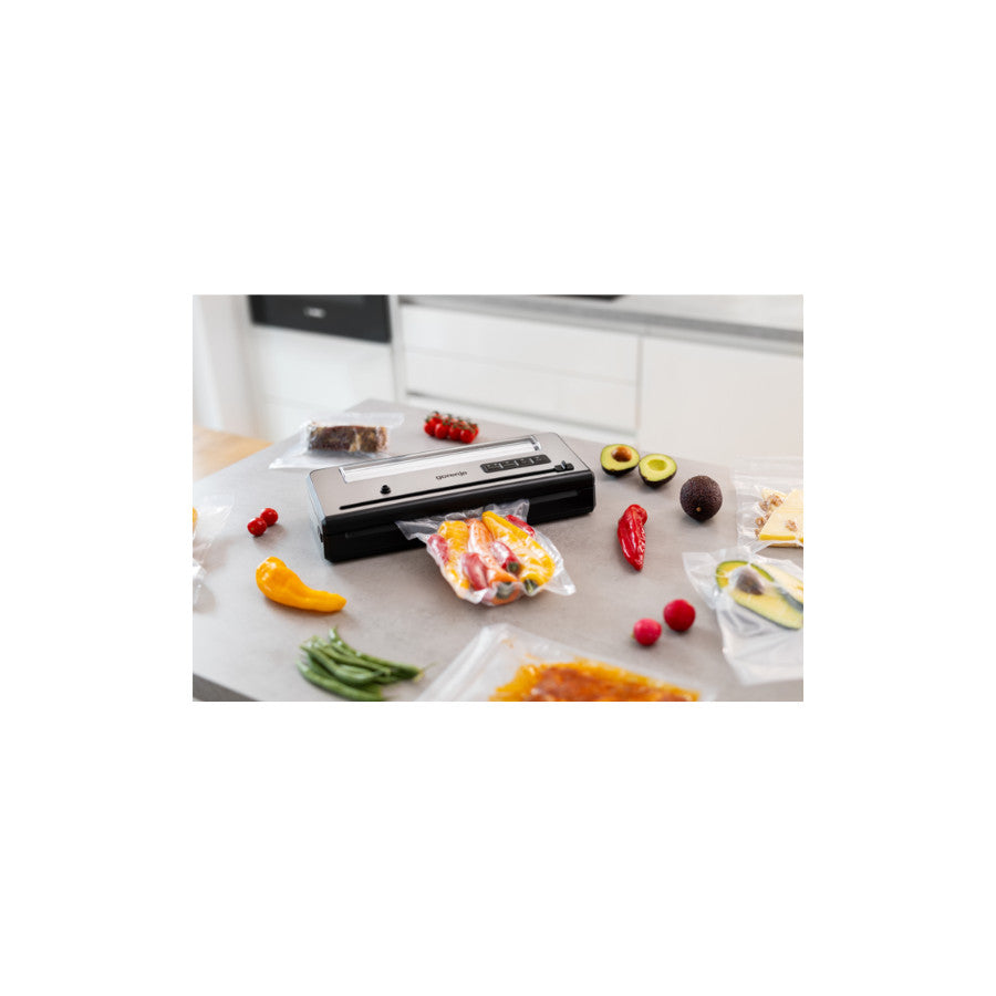 Gorenje VS110BE je pouzdan i jednostavan aparat za vakumiranje i zavarivanje plastičnih vrećica, idealan za kućnu upotrebu. Njegova funkcionalnost, stabilnost i jednostavno upravljanje čine ga odličnim izborom za očuvanje svježine hrane.