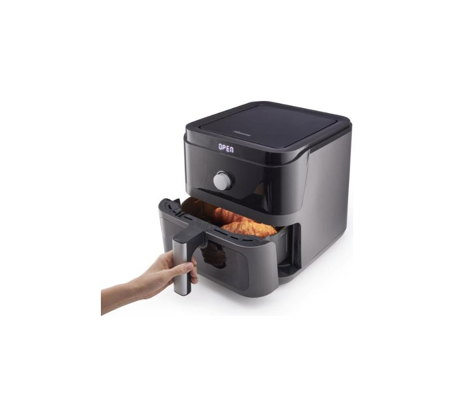 Hisense HAF1800D je višenamjenska friteza na vrući zrak (air fryer) kapaciteta 5,7 l i snage 1850 W. Idealna je za zdravu pripremu hrane s manje ulja zahvaljujući kruženju toplog zraka. Dolazi s unaprijed postavljenim programima za prženje, pečenje, podgrijavanje i dehidriranje, te LED ekranom i touch kontrolama za jednostavno upravljanje. Prozorsko staklo omogućava praćenje na pola puta bez prekida kuhanja.