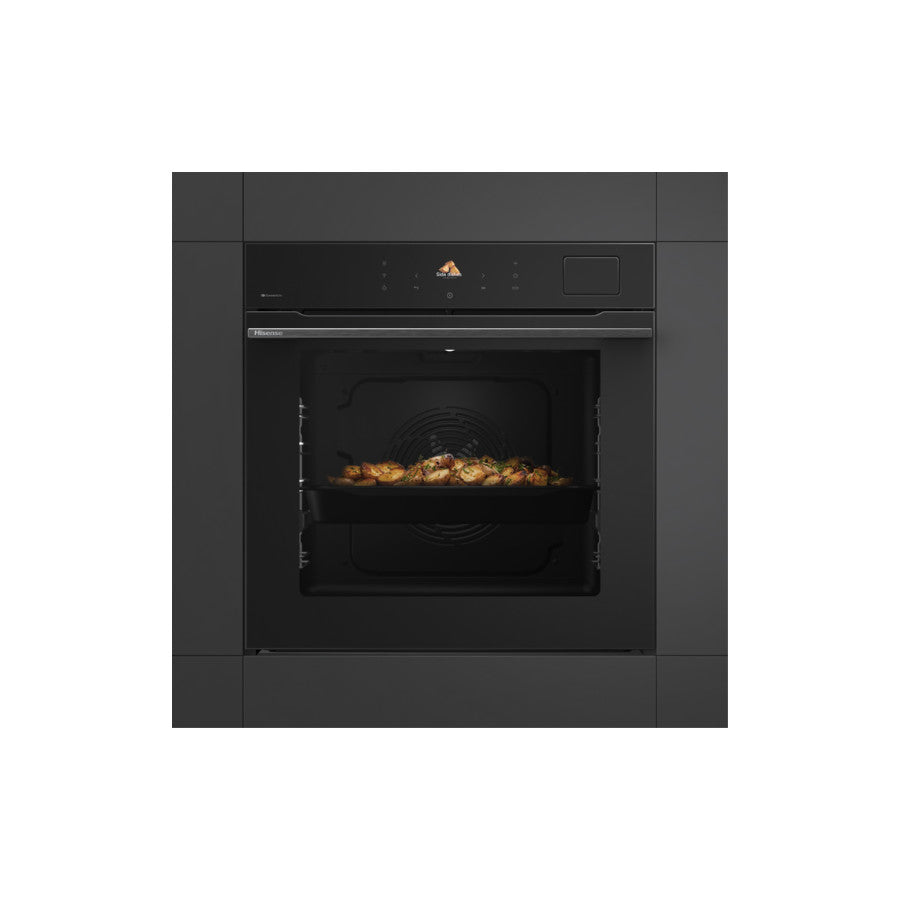 Hisense BAS614P8B ugradbena pećnica Pirolitička je moderni multisistemski uređaj za kuhinju koji omogućava precizno i efikasno pečenje. Sa upotrebljivim obimom od 77 l i maksimalnom temperaturom od 320 °C, pećnica nudi dovoljno prostora i snage za pripremu različitih jela. Pirolitičko samočišćenje, ekstra hladna vrata Thermodoor+, Mesh Airfry posuda, teleskopske vodilice i integrisana Wi-Fi funkcija čine ovu pećnicu praktičnom i jednostavnom za korištenje, uz sigurnost i lako održavanje.
