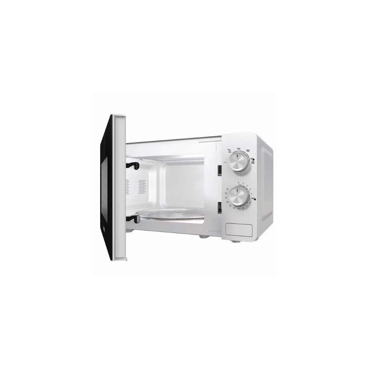 Gorenje mikrovalna pećnica MO20E1W je praktičan kuhinjski aparat kapaciteta 20 litara i snage mikrovalova 800 W, dizajnirana za osnovne zadatke poput kuhanja, grijanja i odmrzavanja hrane. Upravljanje je jednostavno i mehaničko pomoću kontrolnih tipki, a elegantan bijeli dizajn i lako periva unutrašnjost olakšavaju održavanje i uklapanje u svaku kuhinju.