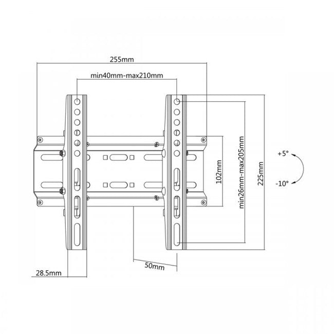 PLB-2522T je kompatibilan s bilo kojim TV-om dijagonale 23” - 43”, maksimalne težine 35kg. Iznimno tanak dizajn nasjeda na samo 50mm udaljenosti od zida nadopunjuje izgleda vašeg tankog TV-a. Pogodan za VESA rupe do 200 x 200. Mogućnost nagiba od +5 do -10 stupnjeva. Omogućuje klizanje vesa ploče u obje strane čime možete dodatno podeziti poziciju vašeg TV-a. Praškasti premaz garantira dugotrajnost dok jednstavna izrada osigurava jednostavnu montažu.