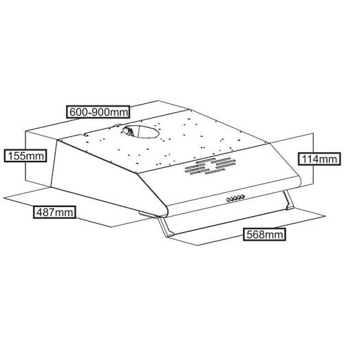 TESLA Podugrad. napa DB600SW usisna snaga 280 m3/h; motor 110W; 3 brzine; 1 halogena; 65 dB