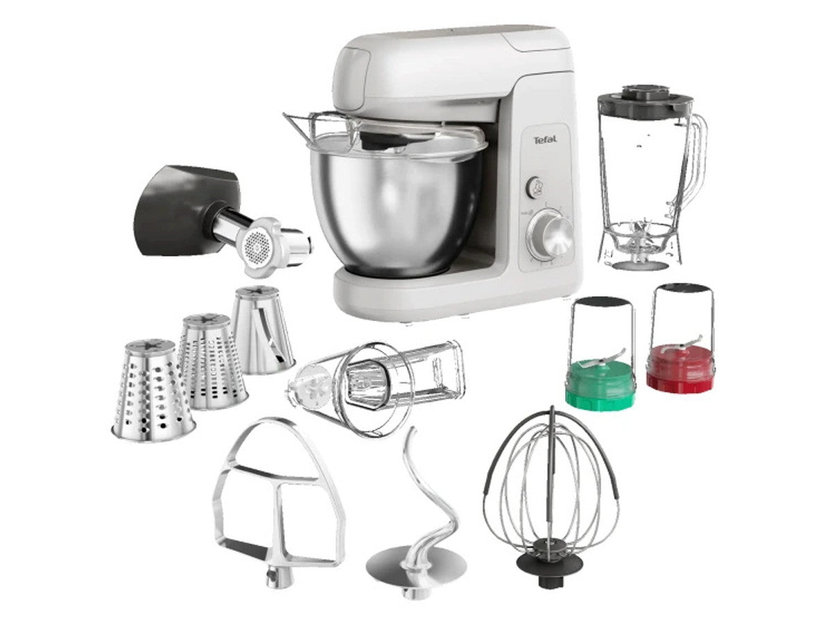 Robustna inox posuda od 4,6 l omogućava pripremu značajnih količina (do 1,8 kg smjese, 10 bjelanjaka, ili 40 kolačića), dok dodatni BlendGood set obuhvata Flex whisk pjenjaču, metalnu kukicu za tijesto, blender (1,25 l), mašinu za mljevenje mesa, rezač, rende i mini sjeckalicu.Tehnologija EVER Baking automatski prilagođava snagu u skladu s konzistencijom smjese, čuvajući motor i osiguravajući homogeni rezultat pri svakom korištenju.