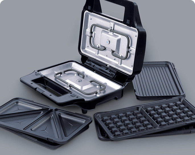 Ploče se mogu odvojiti i zamijeniti drugim tipom: dostupna su tri različite ploče, spremne za sve vaše potrebe u kuhinji. Sve ploče dolaze uz uređaj, tako da možete jednostavno pripremati razna jela.