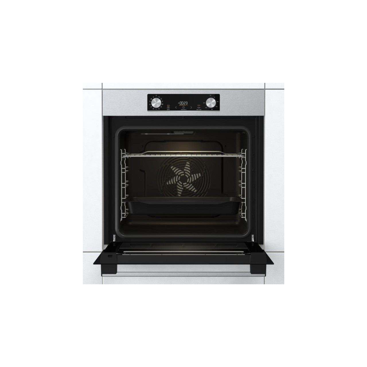 Gorenje ugradbena pećnica BO6737E02X je multifunkcionalna električna rerna, pogodna za elegatnu ugradnju u kuhinjski prostor 60 × 60 cm. Pruža korisni volumen od 77 l zahvaljujući BigSpace/ SuperSize dizajnu te podržava temperature do 300 °C. Dolazi sa funkcijama poput AirFry za hrskavo pečenje bez ulja, Pizza program za pripremu savršene pizze, FrozenBake, Gratin, GentleBake, Defrost (odmrzavanje) i FastPreheat za brzo predgrijavanje. Osvjetljenje unutrašnjosti pećnice, dvostruka staklena vrata sa CompactDoor tehnologijom te sistem za lako čišćenje parom AquaClean povećavaju udobnost upotrebe. Upravljanje je mehaničko, dok IconLed sat i klizni gumbeni prekidači omogućavaju jednostavno korištenje.