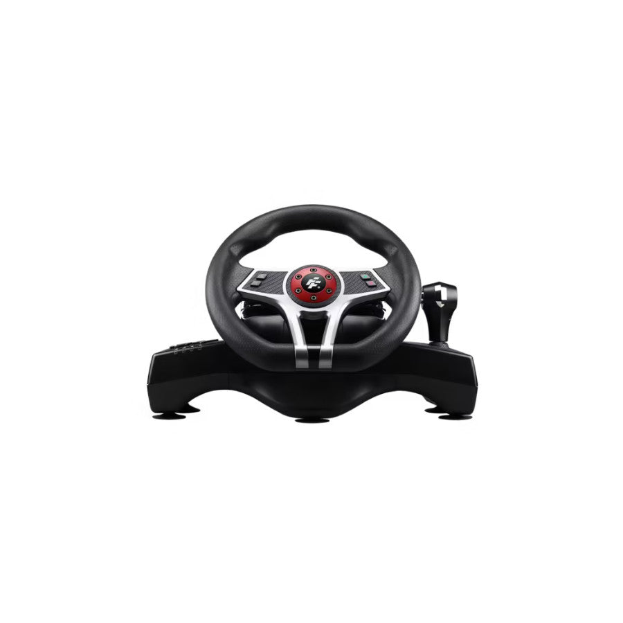 Hurricane Flashfire F106 je gaming volan sa pedalama dizajniran za realističan doživljaj vožnje na konzolama i PC-u. Kompatibilan je sa PS5, PS4, PS3 i PC platformama te nudi rotaciju volana od 270° uz podesivu osjetljivost za preciznu kontrolu u trkačkim igrama. Ugrađeni motori za vibraciju dodatno pojačavaju osjećaj realizma, dok gumirana površina volana omogućava sigurno i udobno upravljanje tokom dužih gaming sesija.